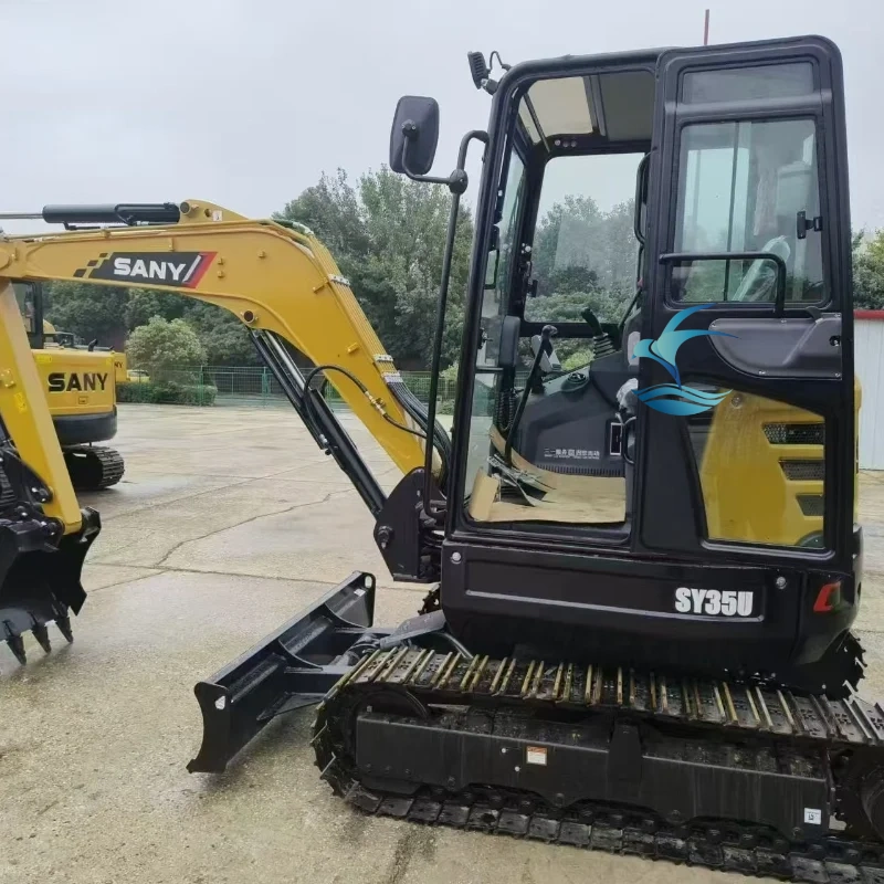 Sany SY35U 3.8-ton mini excavator is equipped with a Sany-customized Yanmar Tier 4 engine and exclusive load-sensing hydraulic system. Featuring zero tail swing and independent boom offset for extremely confined spaces, it delivers 30.4 kN digging force with optimized bucket design, boosting work efficiency by 8%. Awarded Red Star Design Award and Golden Pin Design Award, the ROPS/TOPS certified cab has a shock-absorbing seat and intelligent display. With a quiet design and ground-accessible maintenance components, it comes with standard two-way auxiliary hydraulics for multi-attachment compatibility, optional canopy and rubber tracks, ideal for precision tasks like municipal works, landscaping and interior renovation.